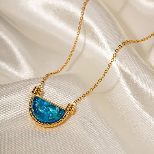 Natural Blue Resin Fan shaped Pendant Necklace and Earring combo